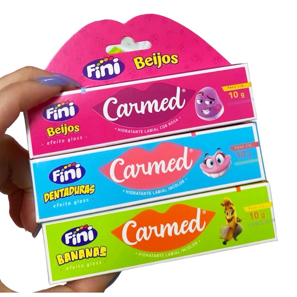Carmed Fini é um hidratante labial com alto poder de hidratação e evita rachaduras, deixando os lábios macios e saudáveis. É incolor e possui efeito gloss e aroma de Fini.